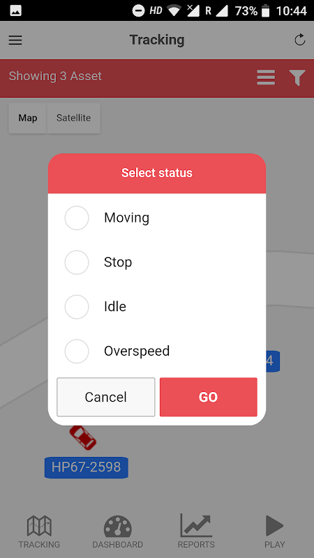 • Easy visual tracking of all vehicles on map, hybrid & satellite mode.