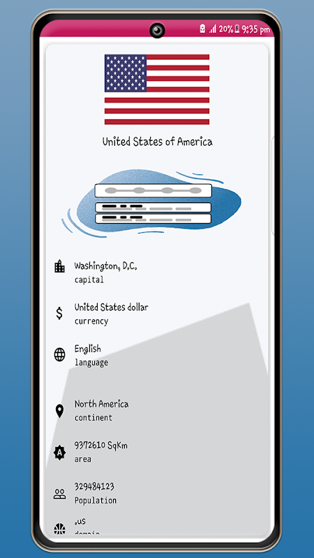 Countries info and quiz app gives significant data about the nations of the world. This App has all over the world Countries' data like Capitals, Currency, Flag, Population, Area, Language, Calling Code, Internet Domain, Continent, etc.