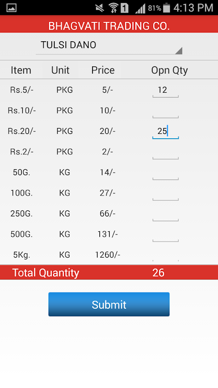 - Opening Stock.