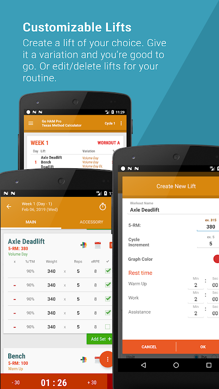 Con l'app GoHAM Texas Method Calculator, puoi personalizzare il tuo allenamento e calcolare i tuoi numeri basandoti sugli ascensori 5-RM. Inserisci semplicemente le 5RM nell'app e sei a posto.