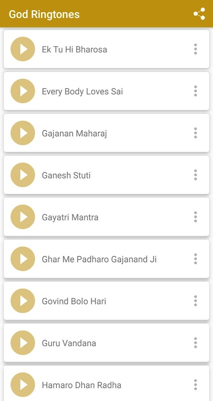 Questa applicazione vi darà grande collezione di divinità indù e aarti dea, bhajan e canti bhajan suoneria per voi che le persone possono impostare questi suoneria nel suo / suo cellulare come suoneria, allarme, notifica.