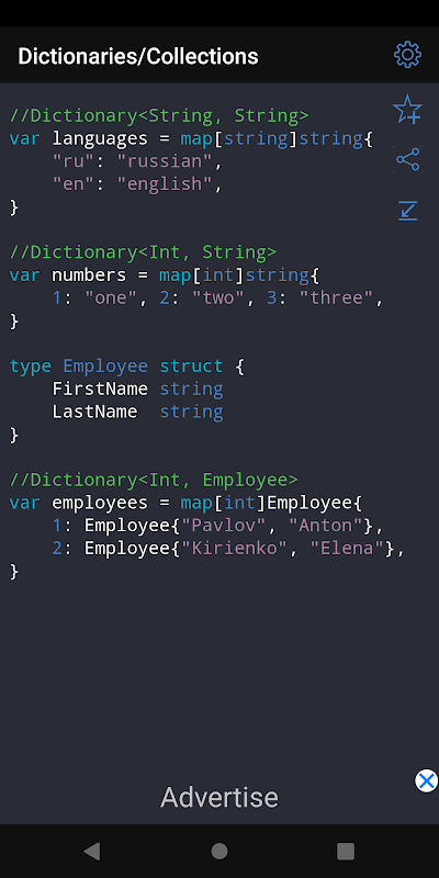 Questi e oltre 300 altri esempi di codice per Golang sono disponibili nell'applicazione.