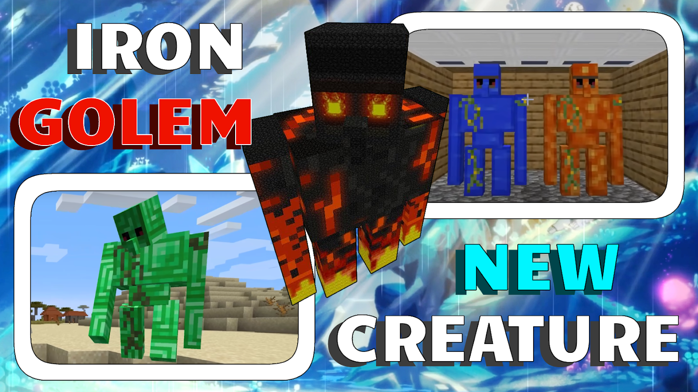 Se sei un amante dell'avventura e delle battaglie, allora è il momento di diversificare la tua mappa con nuove creature: i titani. Nuovi mostri appariranno sui tuoi biomi: neve, magma, ghiaccio, terra e altri golem. La posizione di spawn di ogni parassita è unica: alcuni in tutti i biomi, altri solo in alcuni. L'attacco principale è il lancio di massi di blocchi cubici. Le trame dei mostri sono realizzate in 3D e sono molto realistiche, il mondo della realtà virtuale non è ancora stato così spaventosamente bello. Il gioco si trasformerà e le battaglie saranno più difficili e quindi più interessanti. Quasi ogni materiale può essere trasformato in un golem. La chiamata può essere eseguita in modalità creativa da un uovo specifico e in modalità sopravvivenza dovrai fare un po' di mestiere per ottenere la tanto attesa guardia del corpo. Le creature più rare possono essere create da Redstone e Nether Stars. Puoi avere una lotta a letto indimenticabile tra diverse creature e youtuber. La struttura si presenta come un normale rito: quattro blocchi di un cubo ingrediente e una zucca al centro. L'add-on è compatibile con altri shader, texture, mappe e skin, è perfetto sia per adulti che per bambini. Se non sei riuscito nella sfida della guardia di pietra, non preoccuparti, abbiamo aggiunto delle skin per golem adatte sia ai ragazzi che alle ragazze. Mai prima d'ora hai visto un tale mutante, i pixel mob sono molto più terribili degli scheletri avvizziti e dei tornado. Se domi il golem, sarà il tuo animale domestico, oltre a un forte difensore. Diventerai il più popolare sul server e spaventerai i tuoi amici vestendo una pelle mutante. Puoi rendere il tuo gioco un orrore evocando un boss potente, o viceversa, renderlo più facile facendo amicizia con un gigante. Avrai una nuova esperienza di avventura. Se decidi di costruire case da nascondere sotto il letto, questa non è l'idea migliore, perché con un colpo il mostro distruggerà i tuoi edifici come un'esplosione di tritolo. L'Iron Golem ha aumentato la salute e l'armatura. Alcune pietre hanno modelli di comportamento e risorse unici, alcune creature hanno poteri magici che pulsano all'interno del loro petto come un uomo di ferro. Puoi rafforzare un nuovo mob con una pozione e la sua trasformazione non richiederà più di dieci secondi. Se puoi ancora vincere, riceverai una ricompensa senza precedenti dal forziere. Un altro insolito effetto di attacco è lanciare blocchi e colpire il suolo creando un terremoto che causa ingenti danni a zombi, scheletri e draghi ender. Nuovi oggetti (Impact Orb, Iron Spike Shards e alcune piante) diversificheranno senza dubbio il tuo gioco.