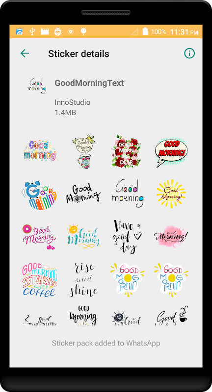 Good Morning Stickers app has the best collection of stickers ranging from Good Morning Stickers,Happy Birthday Stickers,Good Night Stickers for WhatsApp.