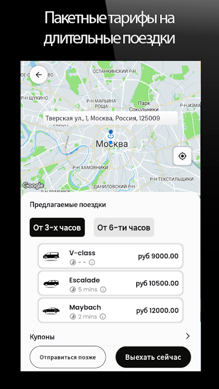 Ora puoi ordinare un'auto premium con autista in un momento conveniente per te e ad un prezzo molto interessante attraverso la nostra applicazione; per viaggi intorno a Mosca, all'aeroporto, fuori città o in tutto il paese. E se hai un anniversario o un matrimonio, ti offriremo una tariffa speciale per il noleggio a lungo termine.