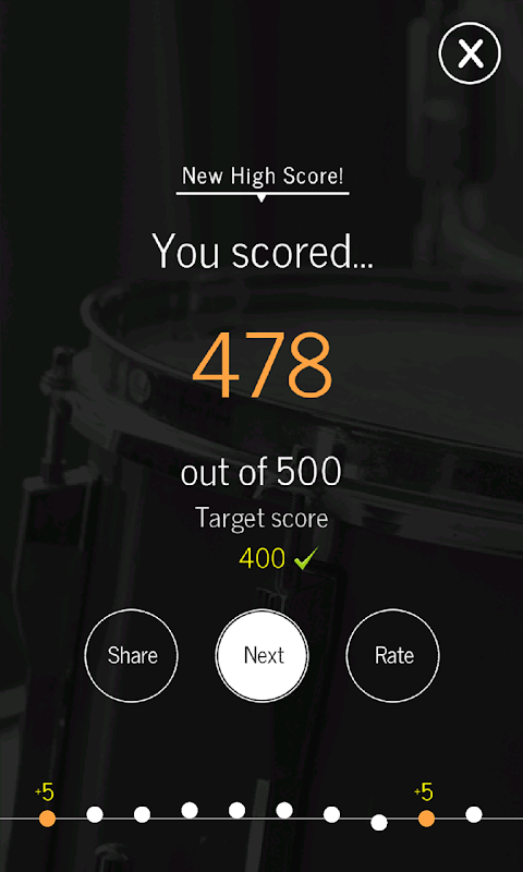 Got Rhythm/Don't Drop the Beat is a beat-matching game that has you continuing the beat after the music stops. To start each level, tap on the absurdly-large START button. This will trigger the intro beat, which will continue to play for about 5 seconds - once this time is up, the music will cut out and you'll need to keep tapping the screen in time for the next 10 beats!