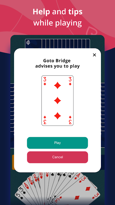 During the bidding phase, Goto Bridge corrects your bidding cards and explains your mistakes to you. During card play, it shows you the best card to play to take the highest number of tricks on the deal.