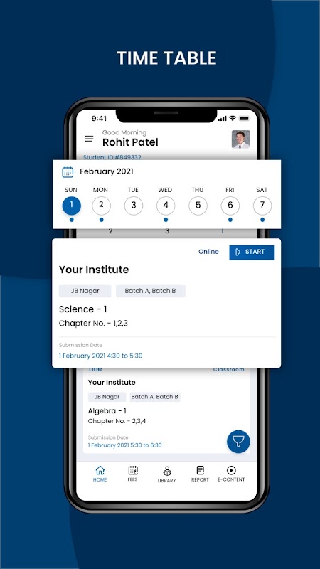 Ogni insegnante, studente e genitore ha una dashboard individuale con calendario che ha un orario dettagliato.