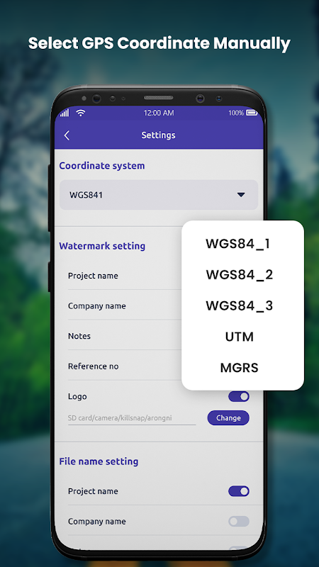 - È possibile selezionare le coordinate WGS84_1/WGS84_2/WGS84_3/UTM/MGRS.