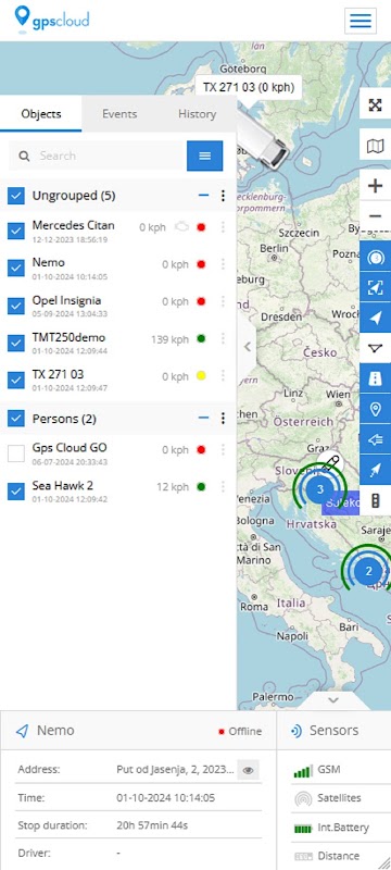 Attraverso l'applicazione mobile, puoi monitorare in modo semplice ed efficace tutti i tuoi oggetti sul tuo cellulare o tablet. Oltre alle informazioni GPS di base, è possibile ricevere anche informazioni da diversi sensori presenti sull'impianto o tramite telemetria dall'interfaccia CAN-Bus dell'impianto.