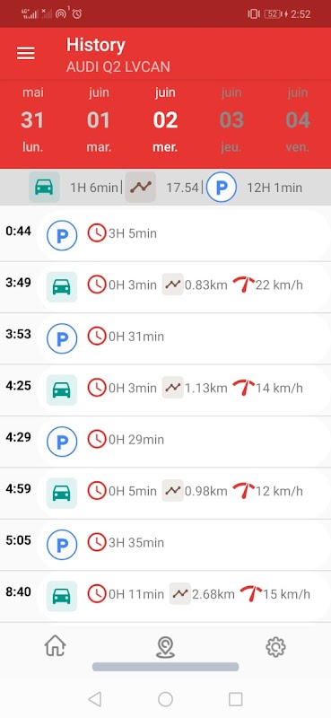 Les données de la vitesse, les informations sont visibles sous forme de tableaux ou de graphiques descriptifs.