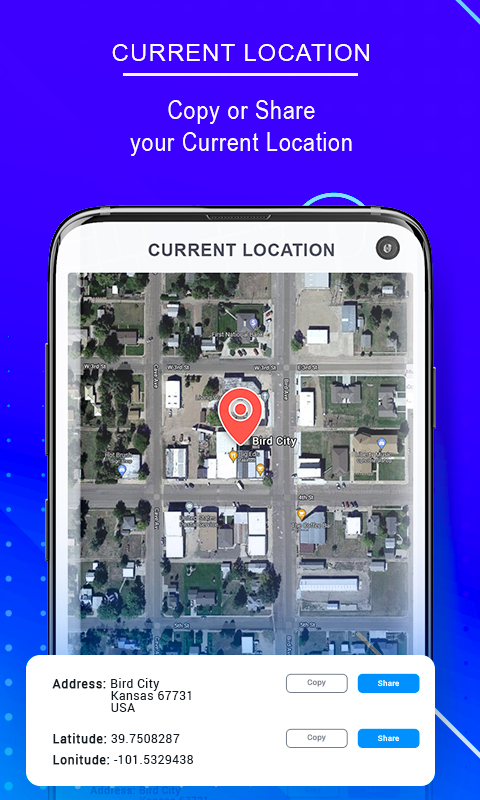 Controlla la latitudine e la longitudine del tuo indirizzo attuale insieme ai dettagli completi dell'indirizzo. Usa questa app anche per trovare il percorso di navigazione più breve tra la tua destinazione e la posizione corrente. E ottieni aggiornamenti sul traffico del tuo percorso per aiutarti a evitare il traffico pesante. E ottieni tutti i luoghi nelle vicinanze con indirizzo e dettagli lat/long.