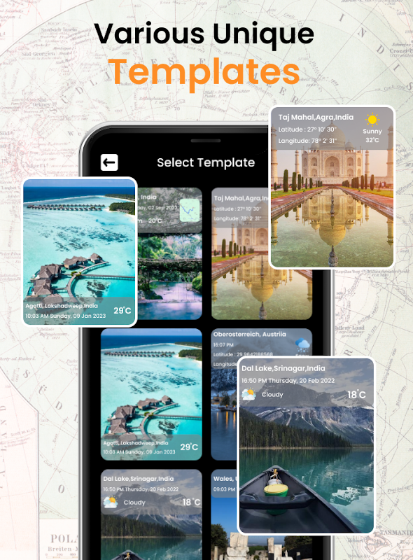 Utilizzando Live Photo GPS Stamp, aggiungi i dettagli dell'indirizzo della posizione GPS con informazioni meteo attuali, data, ora, longitudine e latitudine mentre fai clic sulle tue foto. Puoi anche aggiungere dettagli sulla posizione GPS, meteo, data e ora alle tue foto dalla galleria.