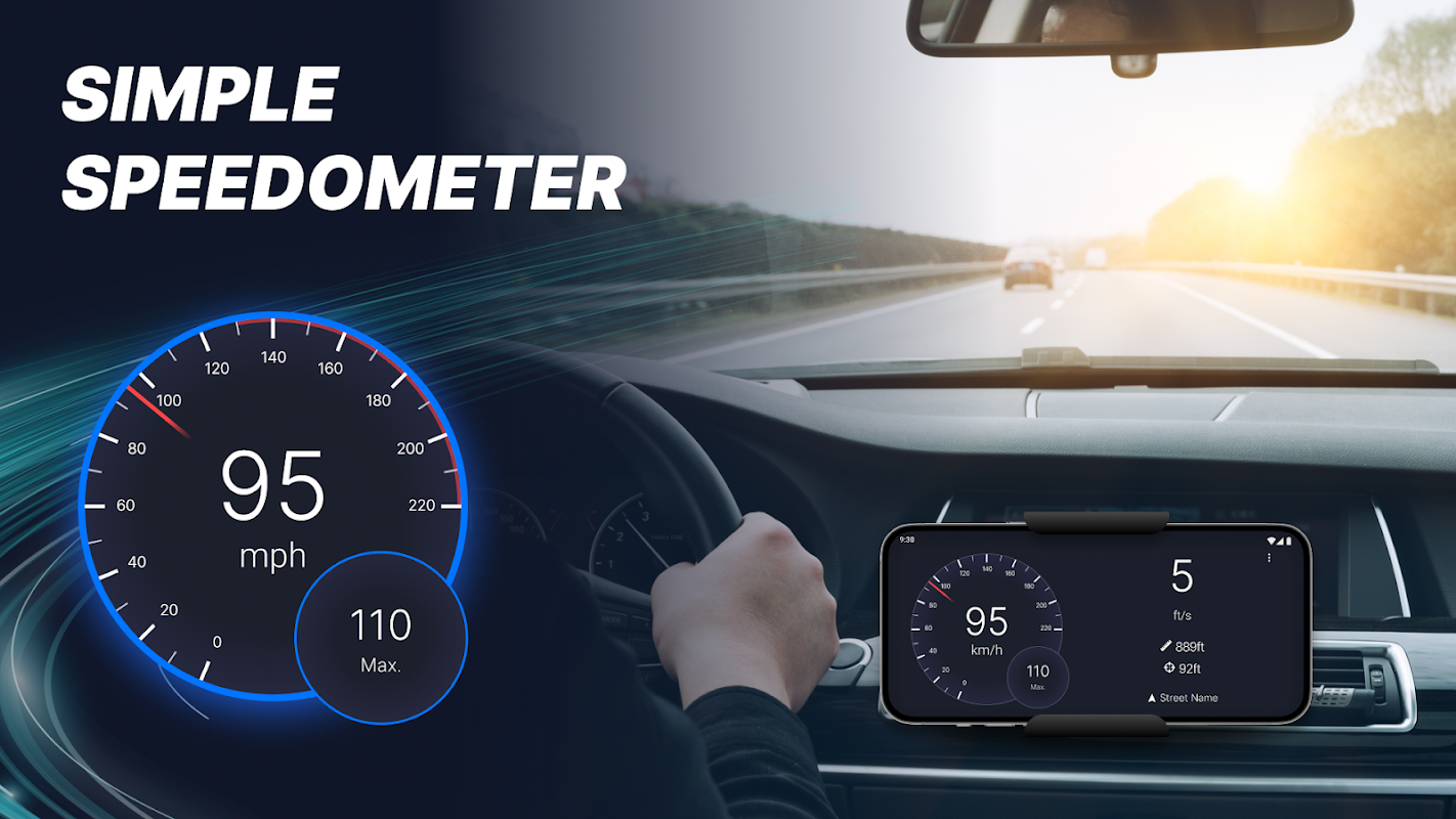 GPS tachimetro applicazione, che utilizza i dati di posizione per visualizzare la velocità corrente e la velocità massima raggiunta.