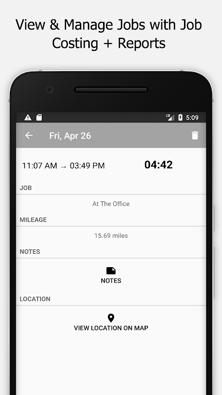L'app consente agli utenti/dipendenti di timbrare l'entrata e l'uscita da un lavoro e di inserire note di lavoro. Gli utenti possono visualizzare tutti i loro fogli presenze anche nell'app mobile. I manager possono gestire le schede attività anche in movimento.