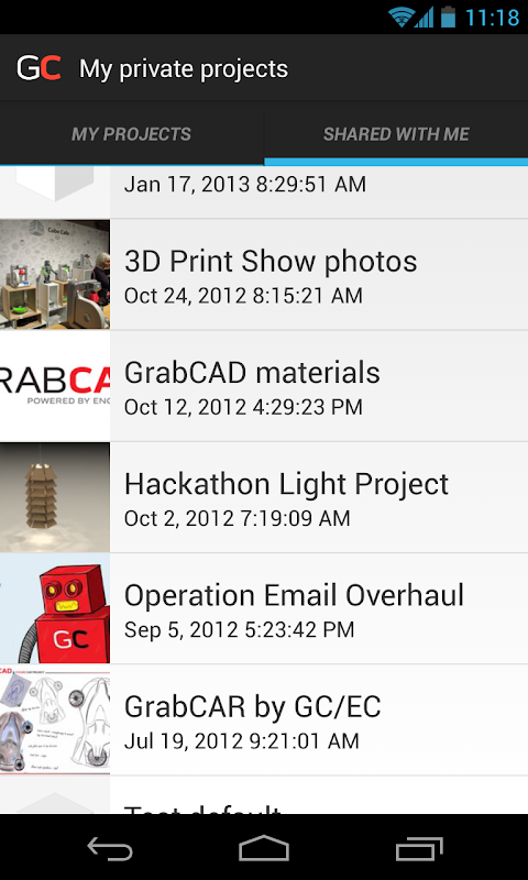 The GrabCAD mobile app offers access to both the GrabCAD public library of CAD models as well as private projects stored on GrabCAD Workbench.
