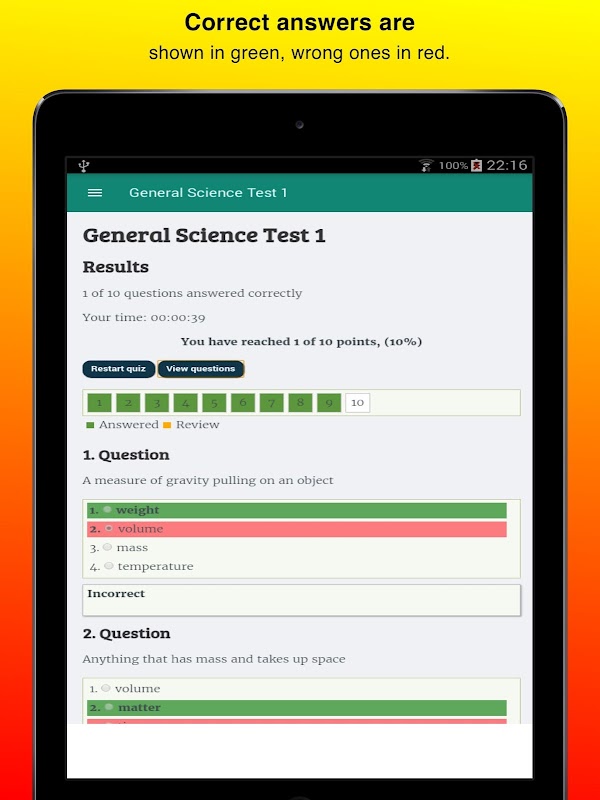 This app gives you an opportunity to test your skills in all Science subjects by performing tests.