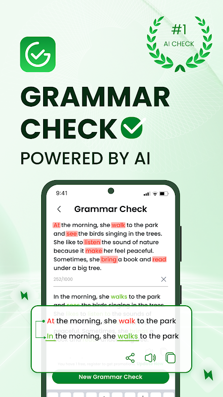 Writing with confidence and correct grammar mistakes as Grammar Check - AI Writing app automatically fixes. Our advanced AI algorithms ensure accurate corrections as you type or spelling, providing real-time feedback to enhance your English efficiency.