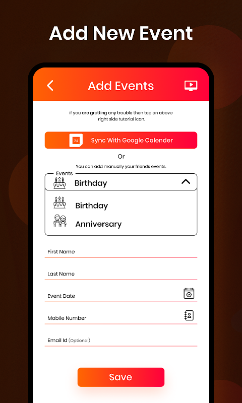 1. L'utente può aggiungere compleanni di amici e familiari e anniversari di matrimonio.