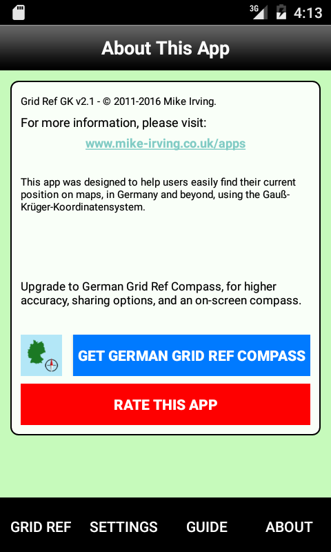 App opererà a livello internazionale. App include una guida grafica per la griglia in Germania / Deutschland.