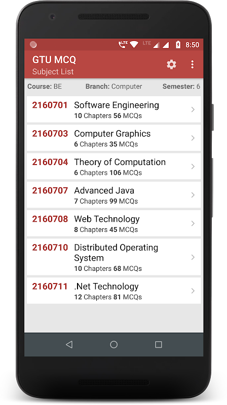GTU MCQ è un'app per praticare domande a scelta multipla (MCQ) secondo il programma di laurea e diploma di ingegneria della Gujarat Technological University (GTU), Ahmedabad.