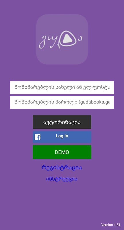 Using this application it is very easy to search for, buy and read a desired audio book on gudabooks.ge from smartphone or tablet.