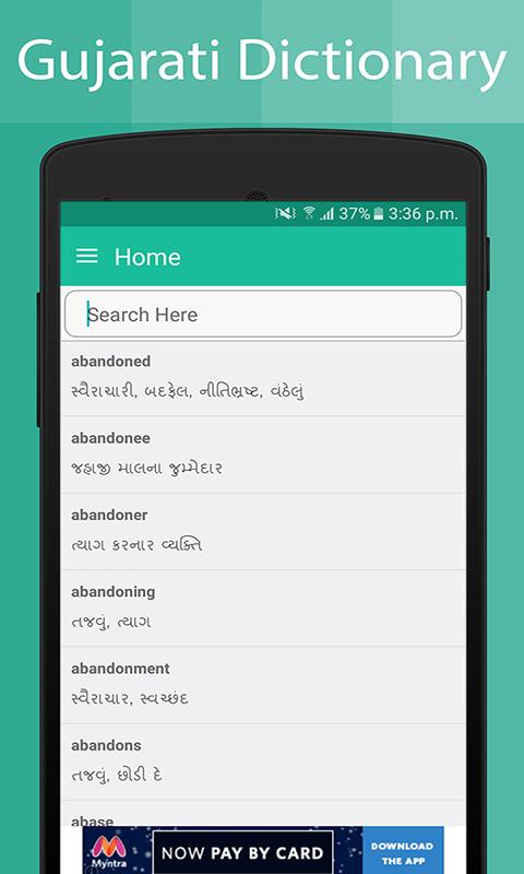 Allora, cosa stai aspettando ? Scarica Gujarati dizionario ora e godere di apprendimento della lingua gujarati in un modo molto semplice! Noi garantiamo che si può imparare oltre 75000 parole inglesi che significano utilizzando la nostra applicazione.