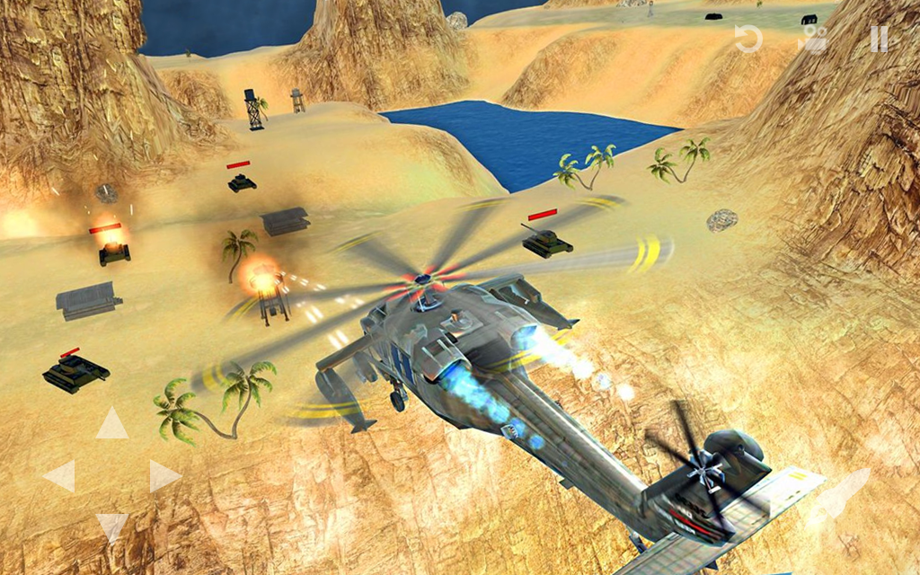 Gunship Helicopter : Aerial Warfare Apache Attack is a Gunship Helicopter simulation game. In this the user will be flying the helicopter and indulge himself in intense aerial battles. Gunship Strike puts you in the gunner seat of the most powerful combat helicopters. Strategically fire your powerful machines guns and devastating missiles to slay hordes of enemies across the world. The game is specially designed for the modern aerial warfare and classic aerial battles to give the user realistic firsthand experience of war where naval battles have great importance. Do not let yourself carried away performing cautious helicopter adventures your sole duty is to destroy enemy battleships in this bloody war otherwise you will be failed. The game features multiple aerial strike and naval strike challenges the user has to be the ultimate pilot with super-efficient with aerial maneuvering when it comes to aerial battle and naval battles. Follow the fast vehicles on the busy and luxury roads and hit them on spot. It is fatal to enter the battle without dreaming for the win, don’t think to lose the ultimate helicopter battle 3d. The user has to be extra careful with Helicopter’s altitude and avoid air crash. In any emergency situation the pilot can pass maeday message for emergency landing. Prevent your helicopter from running out of oil and make sure to not collide with other helicopters.