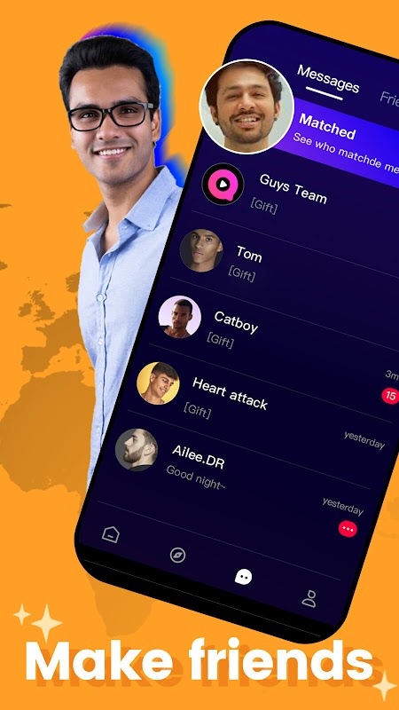 Con un solo tocco, puoi abbinarti istantaneamente a uomini gay di tutto il mondo. Non è mai stato così facile trovare qualcuno con cui chattare.