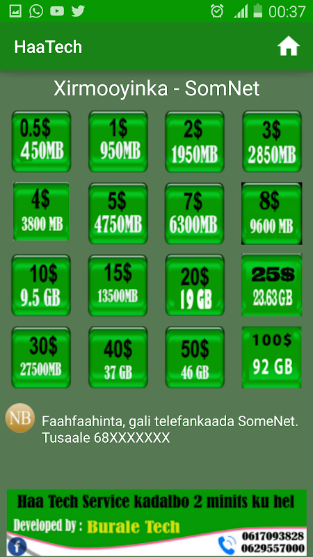 Waa app aad ka iibsan kartid xirmooying internet-ka ee SomNet iyo SomTel