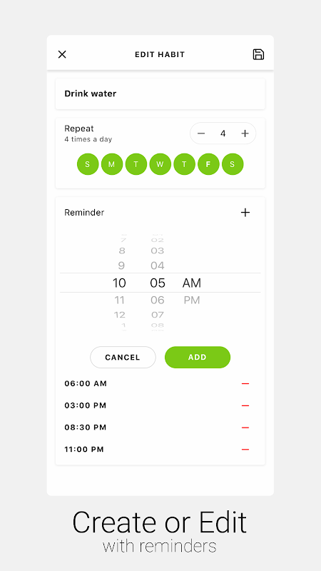 Create an individual reminder for each habit, at a chosen hour of the day.