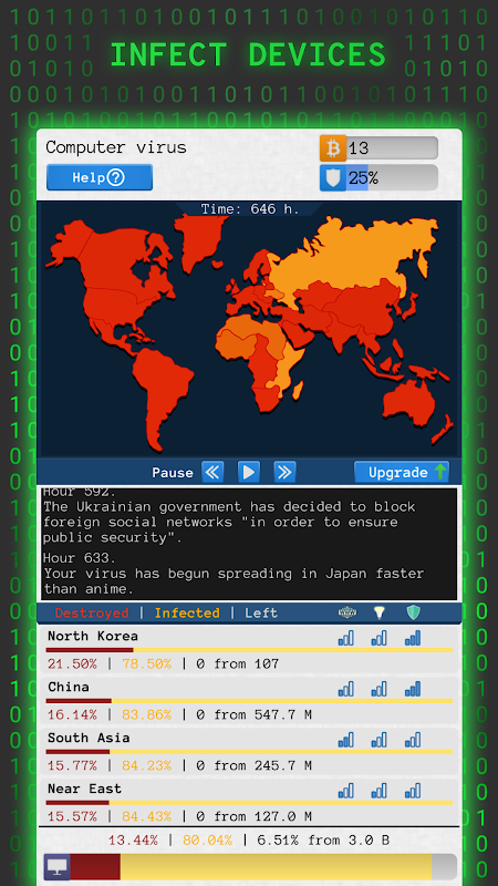 Crea virus e cerca di infettare tutti i computer del mondo! Svilupparli inosservati dalle aziende di antivirus o camminare lungo il bordo, scommettendo su una rapida distribuzione? Scegli quello che ti piace di più!