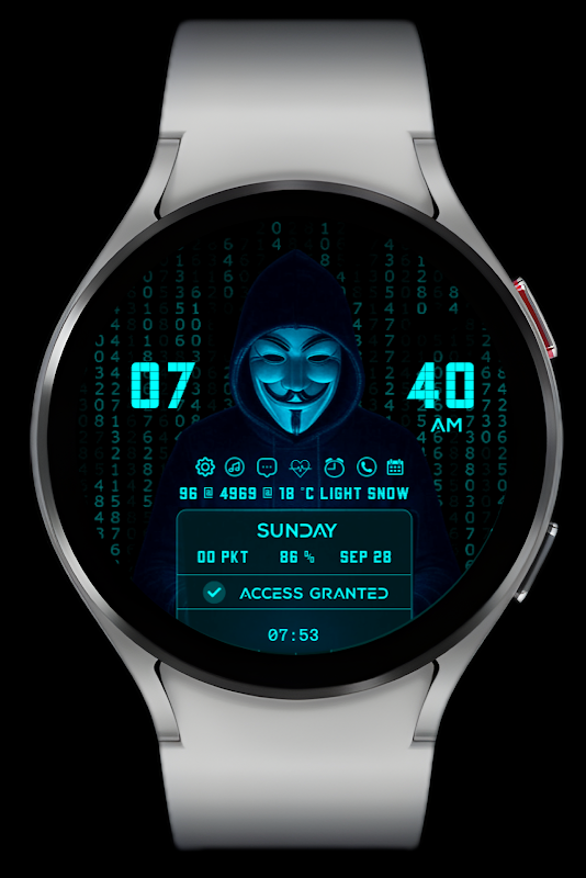 Scatena l'app Hacker WatchFace: un'elegante miscela di design futuristico, ispirato al cyber ed estetica fantascientifica hackerata per un'esperienza di cronometraggio all'avanguardia.