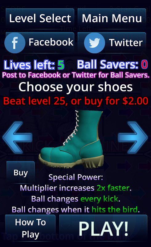 Post to Facebook or Twitter in the game to earn 5 Ball Saver power ups!
