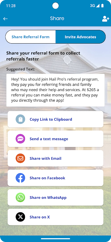 Hail Pro è un'app gratuita disponibile per chiunque da scaricare e viene utilizzata per coloro che desiderano guadagnare premi inviando referral a Hail Pro. È semplice come scaricare l'app, selezionare il rappresentante di vendita e registrarsi. Una volta registrato, puoi iniziare a inviare subito i referral. È l'unica app che consentirà all'utente di inviare facilmente i referral a Hail Pro e di monitorare l'avanzamento del tuo referral e i premi direttamente sul tuo dispositivo mobile. Fare riferimento non è mai stato così facile.