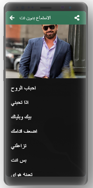 In questa applicazione le canzoni di Haitham Youssef, in quanto contiene le canzoni più belle e migliori dell'artista Haitham Youssef senza rete, e anche l'applicazione contiene un elenco delle canzoni preferite che scegli. E Janas Rahmo è nella mia situazione, e se mi ami, ti respingo e voglio incolpare te, Haitham Youssef 7abib el roo7 e Haitham Youssef Mo Yami e indebolisci il tuo kamak e le canzoni di Haitham Youssef che puoi ascoltare in ogni momento dalle migliori canzoni vecchie e nuove in un'unica applicazione veloce, divertente, facile da usare e gratuita Per ascoltare le migliori canzoni di Haitham Youssef, con voce pura e alta qualità, Campaign Now e non dimenticare di votarla