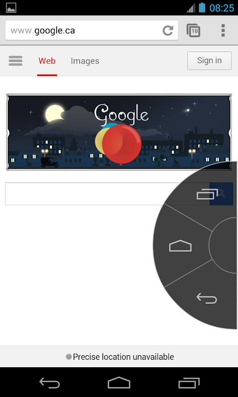 6) Touch the Trigger Spot, and the Pie Controls will show up just around your finger. Slide your finger to one of the three navigation icons and release.
