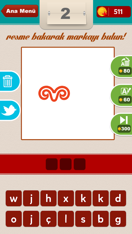 Bulmanız gereken marka nedir? Verilen resme bakın ve ne olduğunu bulun. Yardıma ihtiyaç duyarsanız markanın hangi sektörde olduğunun ipucunu alabilir, harf bulabilir ya da harf silebilirsiniz. Hepsini bulun ve kazanın!