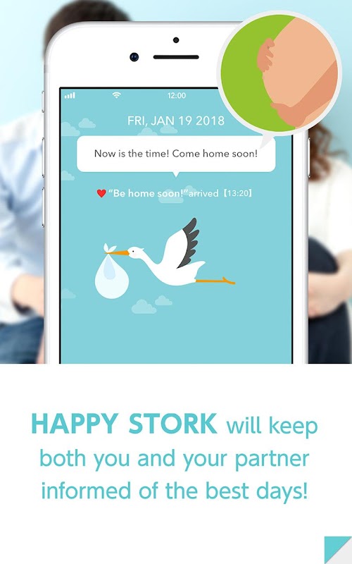Happy Storkg aiuta le coppie che sperano in un figlio. Sebbene molte donne monitorino e gestiscano l'ovulazione e i giorni fertili, può essere difficile comunicare queste informazioni al partner maschile. Ciò può causare problemi di tempistica e coordinamento in quei giorni.