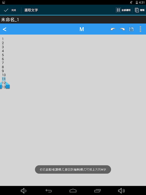 -唯讀模式(可以選擇,可以複製,不能修改)
