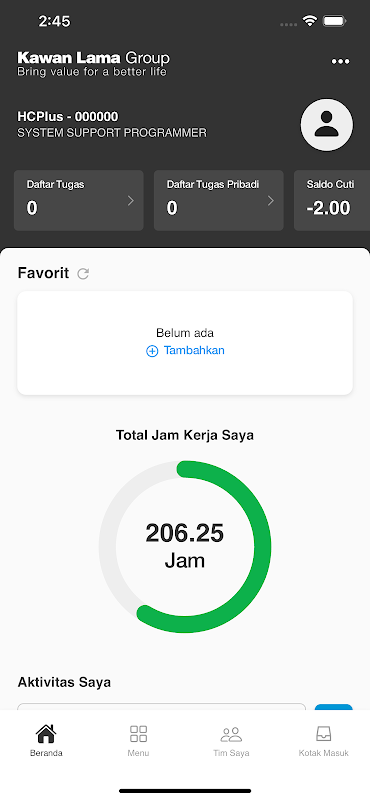 L'applicazione HCPlus Mobile è un nuovo design del Kawan Lama Group per facilitare l'accesso all'amministrazione dei dipendenti in ogni area di lavoro del Kawan Lama Group, anche presso la sede centrale, nei negozi, nei magazzini ea casa.