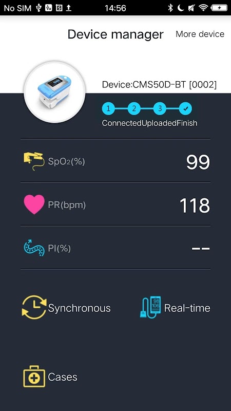 L'app viene utilizzata per connettere il dispositivo e ricevere i dati storici tramite Bluetooth.
