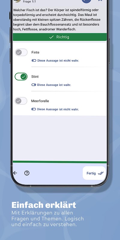 Il nostro sistema si è dimostrato efficace nell'addestramento alla pesca per anni. Numerosi corsi e club di pesca utilizzano con successo il sistema di insegnamento e apprendimento Heintges "In sicurezza attraverso l'esame di pesca".
