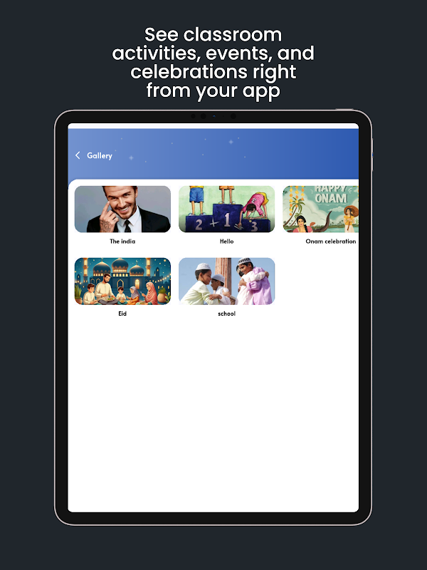 Visualizza foto delle attività in classe e dei programmi scolastici.