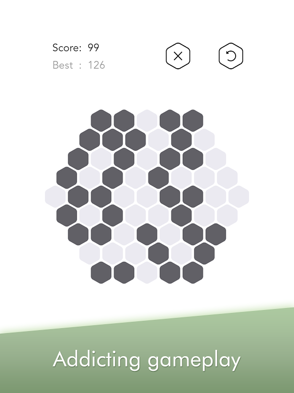 You can put different shapes of hexagons in the game area and if you fill a line full, then this line will disappear and you will get scores.