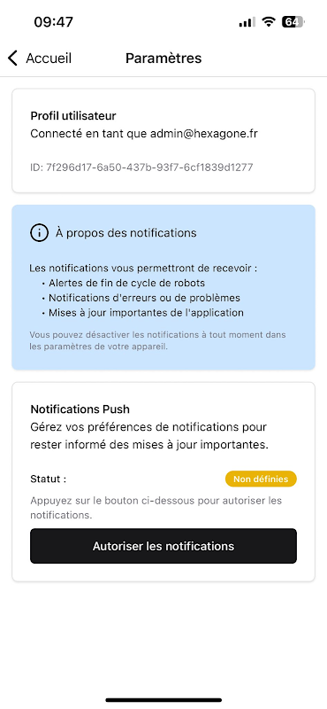 L'applicazione HexaPilot ti consente di gestire la tua flotta di robot Hexagone.