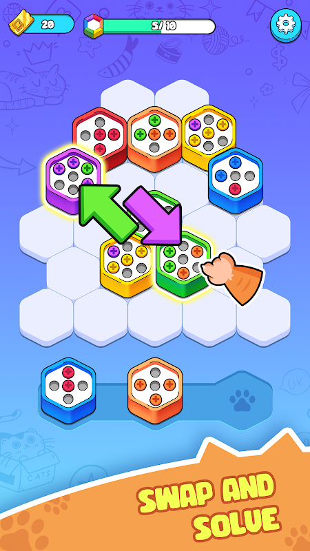 Hexa Screw Sort offre un'esperienza di gioco fresca e accattivante, sfidando i giocatori a organizzare abilmente scatole colorate per ottenere la vittoria. Organizza e posiziona con cura ogni vite per liberare spazio, vincere, raccogliere ricompense speciali e sbloccare nuove sfide.