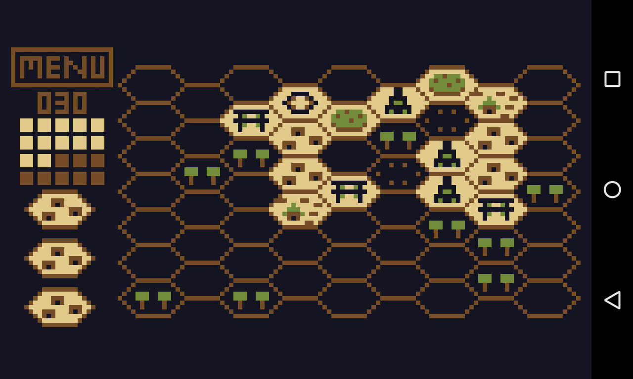 Hexcity è un semplice gioco di strategia a turni. Costruire una città a 10 giri!