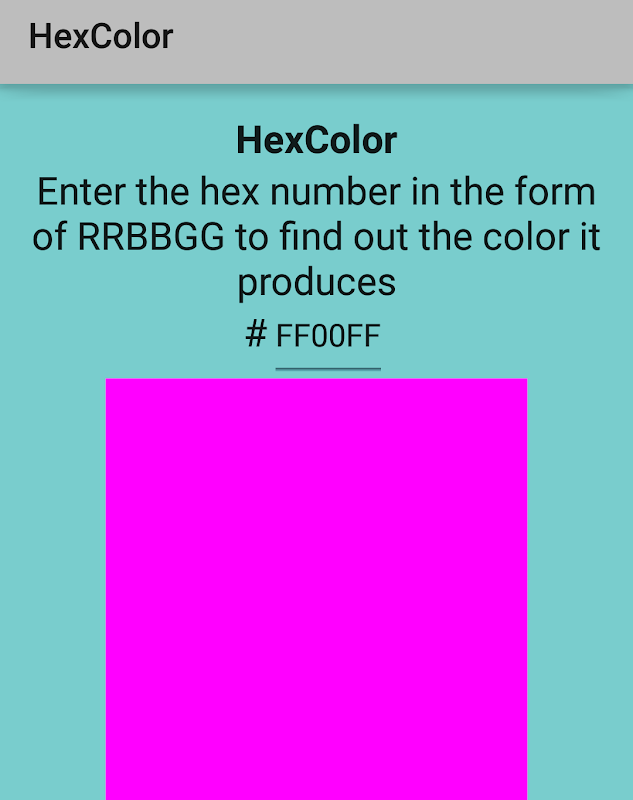 HexColor allows users to input hex color codes into the app and in real time, the app displays the actual color of the Hex code!