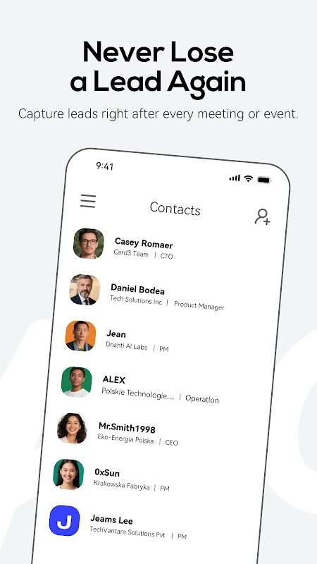 Crea e condividi il tuo biglietto da visita digitale in pochi secondi. Mostra subito chi sei e fai in modo che ogni contatto conti.